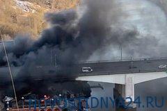 ЖК, о котором идет речь, находится в районе Строгино на северо-западе города. На кадрах, заснятых очевидцами, можно увидеть густой черный дым, распространившийся по окрестностям. Из-за дыма движение по Строгинскому мосту оказалось затруднено.
