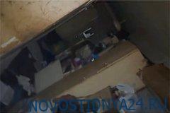На кадрах, снятых жильцами дома, видно, что прихожая, кухня и еще одна комната в помещении, принадлежавшем пожилой женщине, завалены пакетами, пластиковыми бутылками и другим мусором. Кроме того, квартира кишит тараканами, а жильцам приходится терпеть запах гнили, поскольку она фактически не заперта.