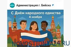 Мэрия Бийска поздравила жителей с Днем народного единства изображением с храмом без крестов. Внимание на это обратил Telegram-канал «Многонационал».